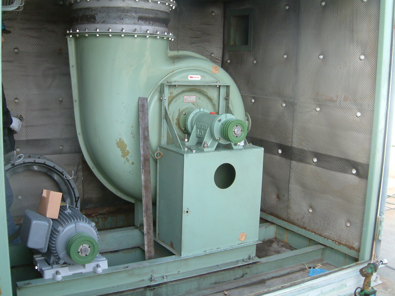 | 排気ファン整備前 | 分解中 | 内部高圧洗浄 | 交換部品(旧品) | 交換部品(新品) |